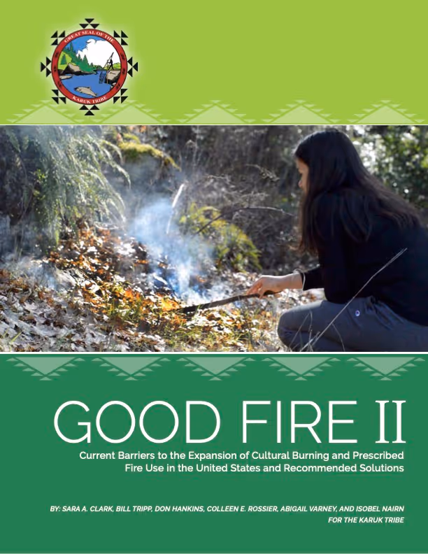 Good Fire II is an updated report from the Karuk Tribe that outlines solutions to expand cultural burning and prescribed fire across the U.S. It builds on the original Good Fire report and supports national policy reform while centering Tribal leadership in fire stewardship.